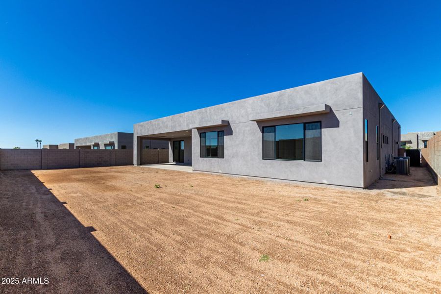 Step into modern luxury in this stunning single-story home featuring 4 bedrooms and 4.5 bathrooms, including a private casita with separate entrance. From the contemporary iron front door to the paver courtyard, every detail reflects exceptional design and craftsmanship. The gourmet kitchen is the heart of the home, boasting stainless steel appliances with a range hood and gas cooktop, Quartz countertops with a waterfall edge on the large island, and an extended backsplash. Aeries cabinets in rich Hazelnut with modern pull-tab hardware and a spacious kitchen nook with built-ins complete this elegant culinary space. The great room showcases a 72'' modern linear fireplace, custom lighting including low-voltage accents, and upgraded flooring throughout that enhances the home's sleek... contemporary aesthetic. The primary suite is a private retreat featuring Quartzite countertops, a rain shower, and a modern freestanding tub. Additional highlights include French doors at the office/den, a laundry room with abundant cabinetry, a thoughtful game room and a 3-car garage for added convenience. This remarkable home blends high-end finishes, thoughtful design, and timeless luxury creating an exceptional living experience inside and out.