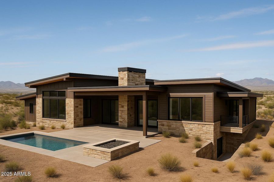 This is your chance to create your dream home, designed specifically for a slightly sloped lot with elevated views. Includes an expansive pool with multiple outdoor gathering spaces to fully appreciate the breathtaking desert Mountain views and City lights of Buckeye. Located in the amenity-rich, award-winning community of Estrella Mountain, in Goodyear, this exceptional property offers the unique opportunity for the buyer to select all finishes, ensuring a remarkable level of customization and elegance.