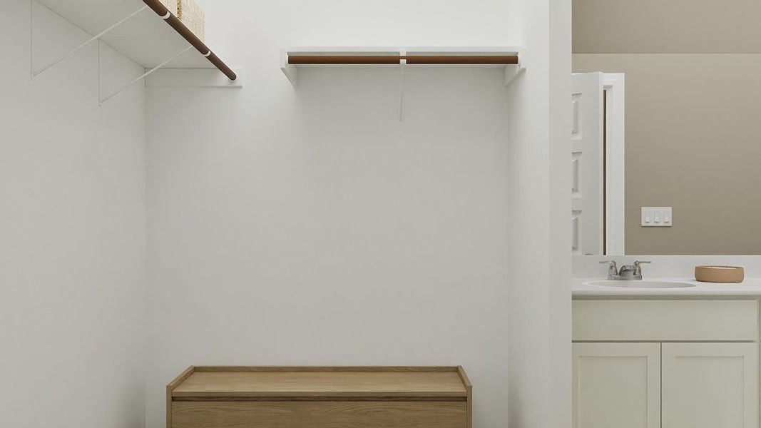 This new three-bedroom home offers a spacious and low-maintenance single-story layout. A convenient bedroom and full-sized bathroom are located upon entry, leading to an open-concept floorplan that blends the kitchen, dining room and family room with easy access to a covered patio. A luxurious owner’s suite at the back of the home offers a tranquil retreat with access to a full bathroom complete with a dual-sink vanity.