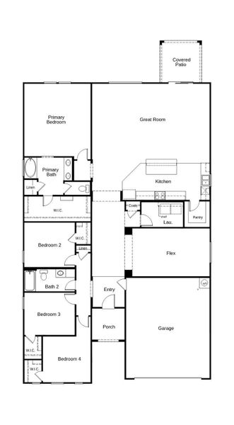 This charming, single-story former model home showcases an open floor plan with a spacious great room and tile flooring throughout common areas. The kitchen boasts a large island, granite countertops, walk-in pantry and stainless steel appliances, including four-door refrigerator. A versatile Flex Space adapts easily to your needs, whether it's a home office or a space for family fun. The primary bedroom, located at the back of the home for added privacy, features a connecting bath that includes a 42-in. garden tub/shower combination, dual-sink vanity and linen closet. Additional highlights include WaterSense®-labeled faucets, energy-efficient low-E windows and a smart thermostat for added comfort and control. The backyard offers an extended covered patio, paved seating area and lush landscaping.