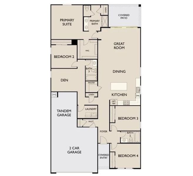 Welcome to the Lilac floorplan, offering 2,153 square feet of thoughtfully designed living space that blends comfort with style. This beautifully appointed home features four spacious bedrooms, a versatile den, three bathrooms, and a 3-car tandem garage.Cool grays complimented by sophisticated whites welcome you. The Milan Collection is comfortably chic, a sleek gallery for high art and artful living. High fashion, high design with dashes of smooth ceramic while decorative touches ornament with pops of wow. It has a European feel,yet is perfectly home.