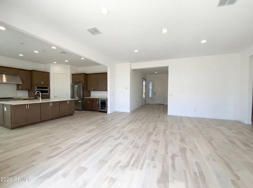 Welcome to Wales Ranch - SanTan Valley's new community resort-style living with exceptional onsite amenities including a playground, pickleball and other sports courts, a large pond, greenbelts, and picnic areas. This beautiful 4 bedroom, 3 bath home with a 3-car garage is designed for modern living with a spacious open floor plan and stylish finishes throughout. The kitchen is a true centerpiece, featuring an oversized island with seating, gorgeous quartz countertops, modern Maple Latte cabinetry, and a full suite of brand-new stainless steel appliances, plus a beverage cooler for added convenience. Tile flooring adds a clean, cohesive look and easy maintenance. Enjoy the perfect blend of comfort, functionality, and community lifestyle in a home that's truly move-in ready. Incl
