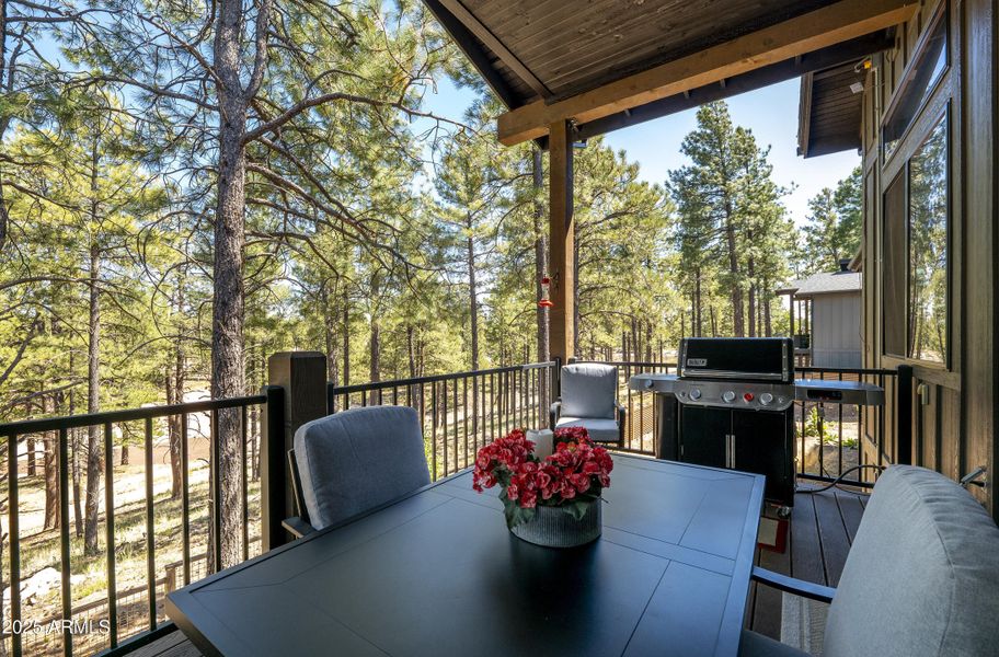 Modern elegance meets mountain charm in the coveted Juniper Point community. Completed in 2024, this thoughtfully designed residence showcases a popular single-level floorplan, with elevated finishes and custom touches throughout. Inside, you'll fall in love with the seamless blend of style and functionality—including a separate entrance casita that adds flexibility for guests, remote work, or creative space. The heart of the home is an expansive open-concept living area bathed in natural light, anchored by a stunning gas fireplace with stone surround. The gourmet kitchen is a true showpiece, featuring custom white cabinetry, a dramatic backsplash, center island, stainless steel appliances, and sleek finishes that flow effortlessly into the dining and living spaces. The private primary suite offers a spa-inspired retreat with a luxurious en suite bath and a generous walk-in closet. A secondary bedroom and full bath provide comfort and convenience, while the detached casita offers privacy and versatility to suit your lifestyle (as it's fully equipped for guests). Spray foam insulation, tankless water heaters, low-E dual-pane windows, air conditioning, energy-efficient construction, and a location that embraces Flagstaff's natural beauty, in one of the city's most desirable neighborhoods.