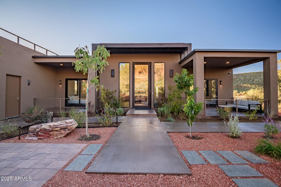The Elephant Rock Residence redefines modern living perfectly positioned along the Bell Rock Trail, this architectural statement captures unobstructed views of Elephant Rock, a rare vantage point that balances design, privacy, and prestige. Every detail of this 0.59-acre property, 5 Bed, 5 Bath - 3,058 sq ft interior, 1,600+ sq ft of outdoor living, 786 sq ft crawlspace with concrete floor, 576 sq ft of Rooftop Deck with private road has been crafted to highlight Sedona's dramatic landscape. The home's clean modern lines and natural materials create a seamless connection between indoor comfort and outdoor beauty. ''Expansive windows'' frame the red rocks like living art, while 14-foot ceilings and an open layout invite light, air, and movement. From the rooftop deck to the chef's kitchen, this is a home designed for refined living and effortless entertaining where elegance meets ease.