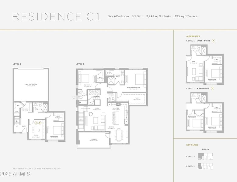 Atavia is a first of its kind product, combining the convenience of a lock-and-leave condominium with your own attached private two-car garage. Belgravia Group presents Atavia, a gated community of 88 luxury condominiums in North Scottsdale, featuring a Taliesin West inspired clubhouse with fitness center, yoga studio, golf simulator, and resort-style pool. Residence C is a duplex home featuring 3 or 4 bedrooms and 3.5 baths, with a flexible first-floor complete with private-entry, mudroom, office, bedroom, and full bathroom. The open-concept second level connects kitchen, dining, and living spaces with a generous primary suite including a huge (18 foot!) primary closet. An elegant powder room, ensuite secondary bedroom, and 195 square foot balcony complete the second floor. 10-foot ceiling heights on the main level, Italian cabinetry, Sub-Zero and Wolf appliances, and wood flooring throughout the living areas finish this exceptional home, ideally located within the One Scottsdale Masterplan at Loop 101 and Scottsdale Rd, in the heart of the city's "new luxury corridor."