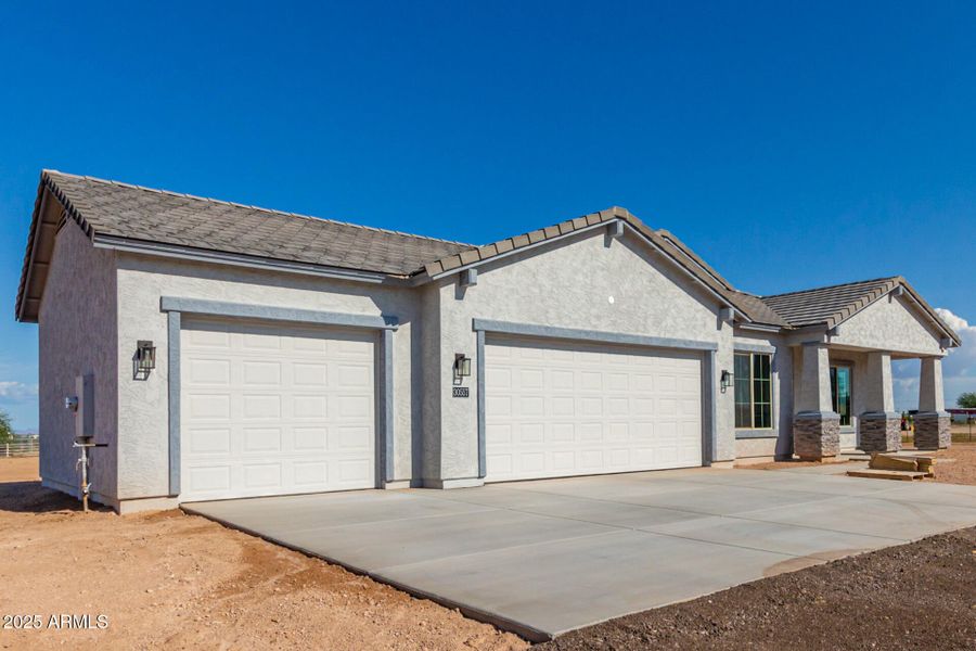 Construction is underway! Discover luxury living in Arroyo Verde Estates with this stunning 4-bedroom, 3-bath (guest suite/office) home on a spacious 1.34-acre cul-de-sac lot. Still time to make your selections at the Design Studio to personalize your new home. Features include an oversized 3-car garage, 10' ceilings, and 8' doors throughout. The gourmet kitchen impresses with 42'' shaker cabinets, quartz countertops, 30''double ovens, and a 36'' cooktop. Want Propane, lets talk The owner's suite offers a spa-like bath with a tiled shower, soaking tub, double vanity, and walk-in closet. Energy-efficient 2x6 construction with spray foam insulation ensures comfort and quality. Conveniently located just 1.5 miles from I-10. Ask about adding a detached Casita or RV Garage for extra space and versatility. Buyers who act early can personalize the home with their preferred interior selectionschoose your cabinetry, flooring, countertops, and tile finishes to match your unique style. Built by a reputable local builder with a focus on quality craftsmanship and energy efficiency. Photos are of a previously completed model home and may show features, finishes, or upgrades that are not included in the listed price.