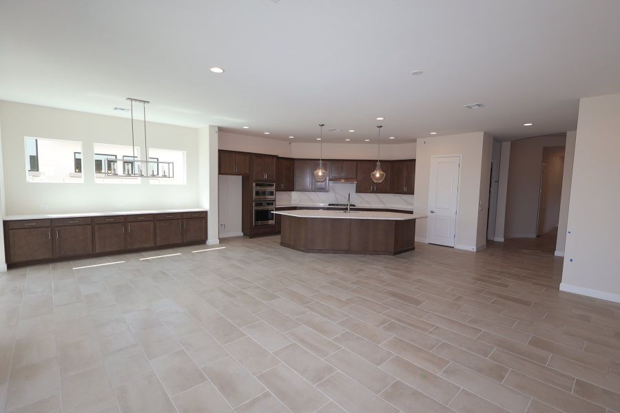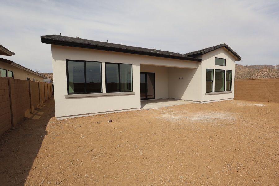 A large covered patio offers the perfect setting to enjoy the mountain and city views that surround you. Welcome home to elevated desert living in Skyline at Verrado Regent Hills.