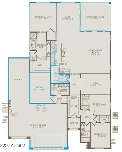 The Parklane II floor plan offers 3 bedrooms, a den, a flexible space, and 2.5 bathrooms, along with an oversized 4-car garage, soaring 10' ceilings, and 8' interior doors. This home also features built-in appliances including a gas cooktop and two full-size ovens, complemented by quartz kitchen countertops and upgraded flooring throughout.