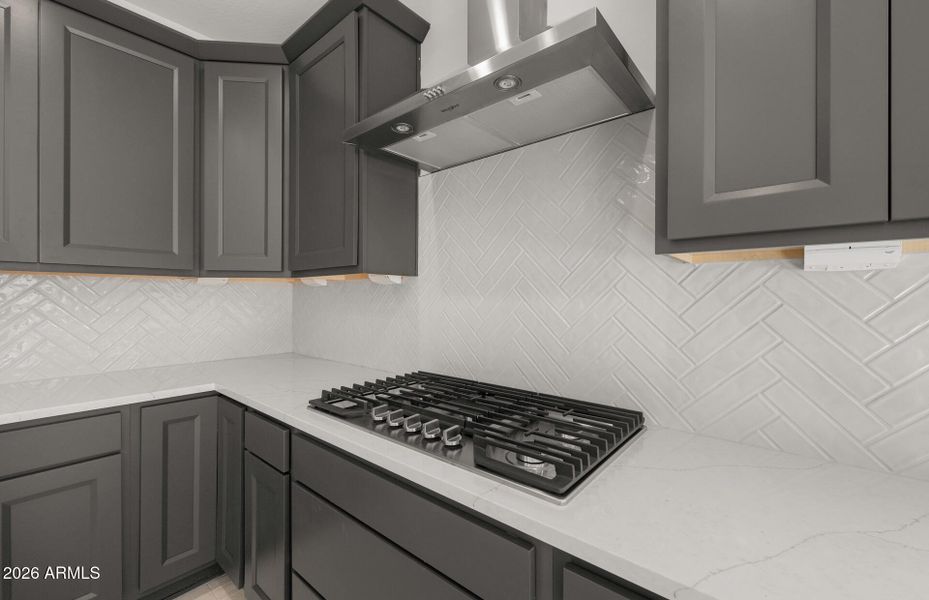 - Gas CooktopQuartz countertopKitchen Island
