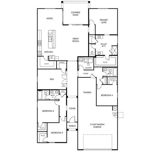 4 bedrooms, 3 bathrooms, and a 3 car tandem garage. Convert the den into a formal dining room where you can host dinner parties. The Divine package offers white cabinets with quartz countertops, wood-like tile flooring with natural tone carpet.