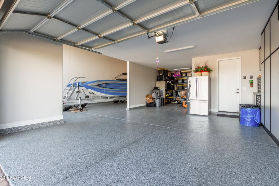 Tucked away at the end of a private cul-de-sac in the coveted Surprise community of Rancho Mercado, this stunning like-new residence offers refined modern living with the rare advantage of backing to open space and the scenic Maricopa Trail. Spanning just under 3,000 sq. ft., the thoughtfully designed floor plan features 4 bedrooms plus a spacious loft, 3 bathrooms and exceptional flexibility for today's lifestyle. The main level welcomes you with a private guest suite and full bath, an oversized laundry room and a spacious family room anchored by a cozy fireplace. At the heart of the home, the open-concept kitchen impresses with crisp white cabinetry, stainless steel appliances, granite countertops, subway tile backsplash and a massive island accented by contemporary pendant lighting--perfect for both everyday living and entertaining. Upstairs, an expansive loft/flex space is joined by two guest bedrooms with a full bath, while the luxurious primary retreat showcases a spa-inspired en suite with dual vanities, custom-tiled walk-in shower, jetted tub and an oversized walk-in closet. Completing the home is a tandem three-car garage plus a highly desirable, pull-through RV bay, ideal for hobbies and toys. Step outside to a relaxing covered patio and expansive backyard ready for your personal vision. With its serene cul-de-sac setting, open-space backdrop, an impressive array of builder and owner upgrades throughout the home, and access to community parks/nearby recreation, this move-in-ready home delivers the perfect blend of privacy, luxury, and convenience.