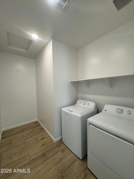 Elegance is showcased throughout with designer finishes from our Roosevelt Collection, including 8 x 36 plank tile flooring in the main living areas and plush carpeting in the bedrooms for added comfort. The spacious kitchen boasts 42'' Espresso shaker cabinets with Satin Nickel hardware, Biancone quartz countertops, and Mosaic backsplash for a modern and sophisticated aesthetic. A large pantry provides plenty of storage, while pre-wiring pendant lighting allows for easy customization. The kitchen is fully equipped with Gourmet GE stainless steel appliances, refrigerator, along with a white washer and dryer for ultimate convenience.