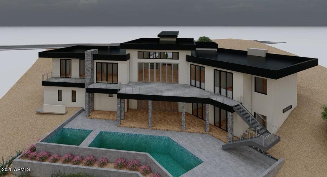 This is a to be built home. Plans submitted to city and will be approved soon. You can buy the lot with plans and build it your self or it can be a pre-sale. Rare opportunity to own a luxurty 6596 sf home on 1.06-acre hillside, golf course lot with plenty of features and breath-taking views. Stunning 6,596 sq ft modern home. Enjoy golf course views plus McDowell Mountains to the north and Four Peaks to the east. Home design includes 4 beds, 5.5 baths, lower-level entertainment area with kitchen, wine cellar, and hidden armory, main-level great room, double island kitchen, office, huge master suite, elevator, 4-car garage, pool, spa, BBQ, and more. Gigantic covered patio for lower level. Private balcony for master bedroom and a separate oversized balcony for outdoor entertainment.