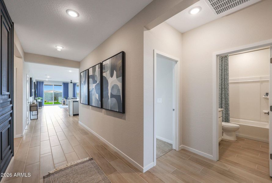 Single-story 4 BEDROOM home with 3 baths! Bedroom 3 has is own en-suite bath perfect for guests or mother-in-law. The open layout is ideal for gathering and hosting family. Smart home technology, energy star certified home in the sought after LAKES at Rancho El Dorado neighborhood. 36'' white cabinets, granite countertops! Kitchen backsplash included. Gorgeous UPGRADED wood-like ceramic tile floor, carpet in bedrooms. Stroll along the lakes in the evenings, and enjoy numerous parks and playgrounds. ALL SINGLE STORY NEIGHBORHOOD.