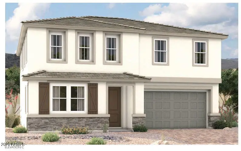 Explore this dynamic Tourmaline home. Included features: a charming covered entry; a main-floor bedroom and bath; a gourmet kitchen offering quartz countertops, a center island, 42' upper cabinets, stainless-steel gas appliances, and a roomy pantry; an open dining nook with access to a spacious covered patio; a generous great room; a large loft; two additional bedrooms; a shared full bath; a convenient laundry; and an inspired primary suite boasting a private bath and an expansive walk-in closet. This home also offers stone tile flooring, a concrete-paver driveway and walkway, and front yard landscaping.