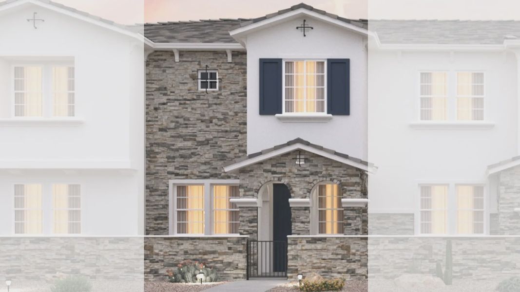 The Camille II floorplan provides a spacious 3-bedroom, 2.5 bath townhome featuring an expansive loft, perfectly designed for modern living. This home offers enhanced flexibility and comfortable living spaces throughout. The well-appointed kitchen showcases granite countertops, a generous island, stainless steel appliances, a walk-in pantry, and 42" upper cabinets. Upstairs, the loft area provides ample space between the primary suite and additional bedrooms, along with 42" executive height vanities in each bathroom. This Energy Star certified home is built with a tankless gas water heater for reduced energy costs. The community amenities include a resort style pool, shaded ramada for outdoor entertaining, gas grilling areas and a covered play area. This townhome, with its larger layout, delivers the perfect balance of space, comfort and convenience.