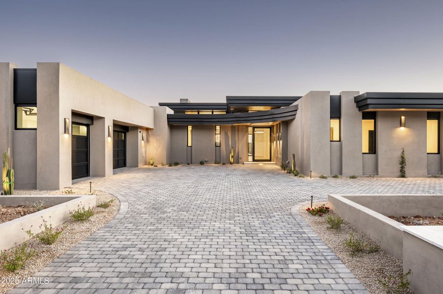 New construction—finishing July 2025! Rare in-town new build with preserve access, sweeping mountain and city light views, privacy and expansive outdoor space. Located in a guard gated 227-home community with quality amenities, this 6,470 SF single-level home sits on a private 1.6-acre cul-de-sac lot backing to the McDowell Sonoran Preserve - yet is very close to top-rated public and private schools, cultural activities, dining, golf, trail systems, & 101 freeway access.
