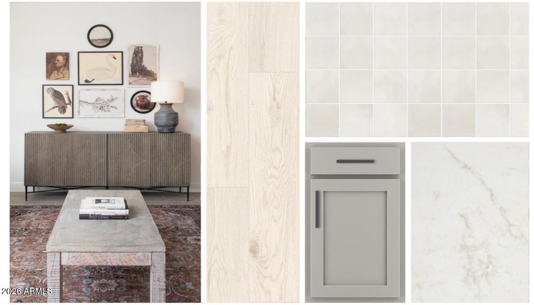 Discover the Lavender Plan, a beautifully designed single-story home offering 2,222 sq. ft. of stylish, functional living space with a Modern Desert exterior. This move-in-ready residence features 4 spacious bedrooms, 3 bathrooms, a flexible guest retreat, and a 2.5 car tandem garage. At the heart of the home, the kitchen shines with a window over the kitchen sink, gray 42'' cabinets, quartz countertops, a white backsplash, and a large island perfect for gathering. As part of the Artisan Collection, it comes complete with stainless steel appliances including gas range, microwave, dishwasher, refrigerator and prewiring for pendant lights. Wood-look plank tile flows through the main living areas, leading to an open great room that connects effortlessly to a covered patio through a 4-panel sliding glass door, ideal for indoor-outdoor living. Additional highlights include 8-foot interior doors, 2-inch faux wood blinds, a washer and dryer, and elegantly finished bathrooms with quartz countertops and oval sinks. With its thoughtful layout, modern finishes, and welcoming design, the Lavender Plan is a home you'll love to live in every day.