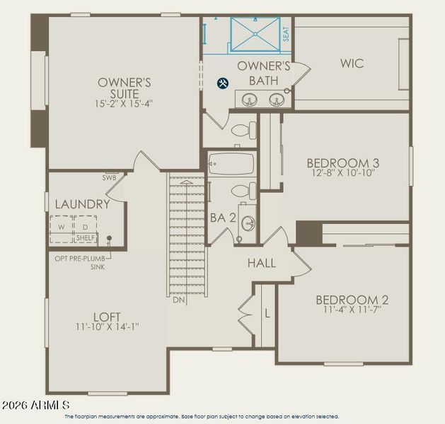 The Powderhorn offers a thoughtfully designed two‑level open layout with a first‑floor bedroom and bath. Enjoy a quaint backyard and a shared driveway leading to a private two‑car garage. The owner's suite features a glass walk‑in shower, while the covered patio extends your living space. Comforting interiors include granite countertops, stainless steel appliances, refrigerator, washer and dryer, whole‑home blinds, and a blend of tile and carpet flooring. Conveniently located within walking distance of the community clubhouse & amenities planned to open soon.
