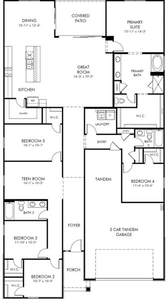Lennon boasts 5 bedrooms plus a bonus room and a 3 car tandem garage. Maple cabinets with white countertops, backsplash, tile flooring and carpet in our Modern Rustic package.