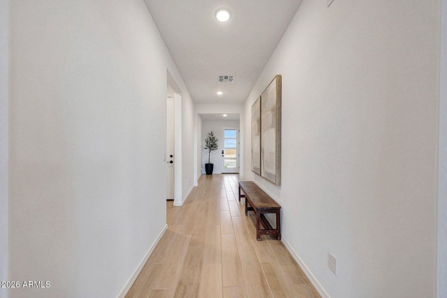 Model Home can close in April/May. All closing costs paid + below-market rate available thru builder's pref lender. This 1-story 3-bed, 2-bath home features walk-in closets in every bedroom, lots natural light, and desirable open layout. The gourmet kitchen showcases 42'' upper cabinets, a 36'' gas cooktop with chimney hood, wall oven / microwave, and a designer backsplash, opening to a bright great room with a 12' sliding glass door leading to a landscaped backyard. Additional upgrades include 8' interior doors, raised-height vanities in all baths, and a 2.5-car garage with extra storage. Amenities include pickleball, basketball, bocce, game tables, parks, and social gathering areas. Close Trader Joe's, Costco, Goodyear Ballpark, and quick access to the I-10 and Loop 303.