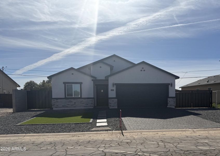 Upgraded 4 bed, 2 bath home with modern finishes throughout. Features an open-concept layout with a stylish kitchen, quartz countertops, stainless steel appliances, and a large island. Spacious primary suite with dual sinks and a custom tiled walk-in shower. Block privacy wall, RV gate, and man gate. Move-in ready with great curb appeal and no HOA.