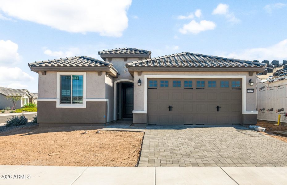 Elegant finishes and thoughtful upgrades throughout. This home features driveway pavers and a 4' garage extension, along with premium border pricing backing to a serene common area. Inside, enjoy upgraded 12'' x 24'' tile flooring, natural‑stain maple cabinetry, quartz countertops, and a suite of KitchenAid stainless steel appliances. An enhanced electrical and low‑voltage package adds modern convenience, while the included refrigerator, washer and dryer, and 2'' faux wood blinds make this home truly move‑in ready. Anticipated completion: March 2026.