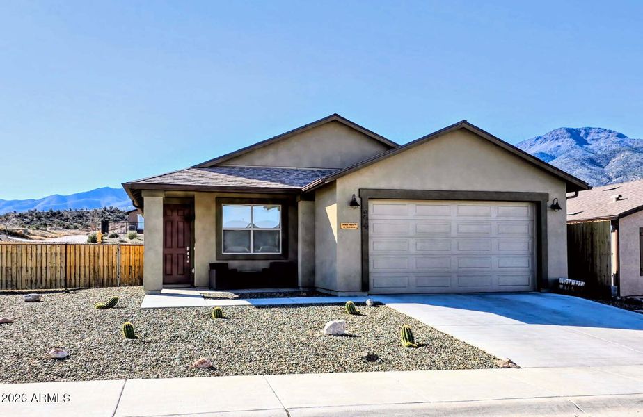 Built in 2024 by premier builder Miramonte Homes, this well-maintained, recently constructed single-level home is located in the desirable Mesquite Hills community of Cottonwood, AZ. Offering 4 bedrooms, 2 full baths, and 1,656 sq ft, the home sits on a large corner lot with panoramic views of Mingus Mountain, Sedona Red Rocks, the Verde Valley, and Flagstaff's San Francisco Peaks.