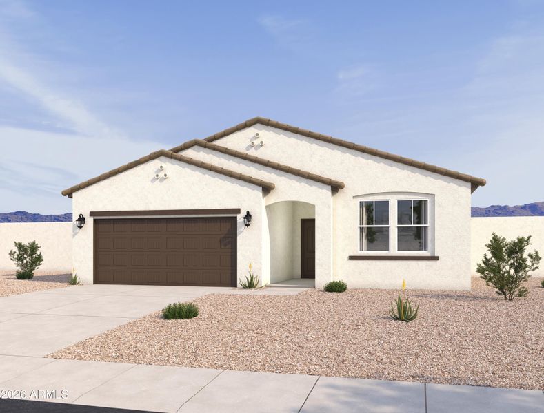 Brand new community in Surprise! This stunning single story home offers 2,222 sq ft of functional living space. It features 4 bedrooms, 3 bathrooms, guest retreat area, and a 2.5 car garage. The open concept kitchen is perfect for entertaining and features an Island, a walk-in pantry and stainless steel appliances. It also offers our Oxford Collection which includes espresso 42'' cabinets, biancone quartz kitchen countertops, sea salt 2x10 tile kitchen backsplash, and 8x36 wood looking plank tile in all the common areas. The great room offers a 4-panel center sliding glass door so you can step out into your covered patio to enjoy indoor/outdoor living in your backyard with friends and family. The primary suite has a spacious walk-in closet, double sinks, walk-in shower, and an additional linen closet for extra storage. This home also features a paver driveway, 8 foot interior doors, soft water loop, and all appliances included making it move in ready! Located in North Copper Canyon with resort-style amenities and easy access to the 303.
