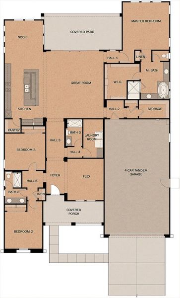 The Strawberry is a 2747 square foot family home with 3 bedrooms, plus flex room, 3 baths, a covered patio and a four car garage. It can be reconfigured to include 5 bedrooms and 4 baths. The flex room can be a home office or open study. HERS 39.