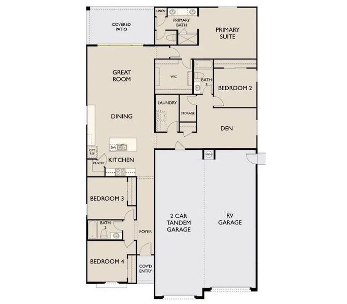 Welcome to your dream home! This stunning residence boasts four bedrooms, including a versatile den that can be transformed to suit your unique lifestyle. With a spacious RV bay and an additional 2-car tandem garage, this property is designed for the utmost convenience and flexibility. The heart of the home is the well-appointed kitchen, featuring modern GE appliances and ample counter space with our designer curated Foundry Collection featuring gray 42" uppers, backsplash and stunning black hardware. The open-concept living and dining areas are perfect for entertaining guests or enjoying quality family time. Retreat to the owner suite, complete with a private ensuite bathroom and generous closet space. The three additional bedrooms provide plenty of room for a growing family or guests. The 2-car tandem garage ensures ample parking space, while the RV bay provides even more room for storage, a workshop, or your favorite hobby. This property truly offers the perfect blend of comfort, functionality, and style.