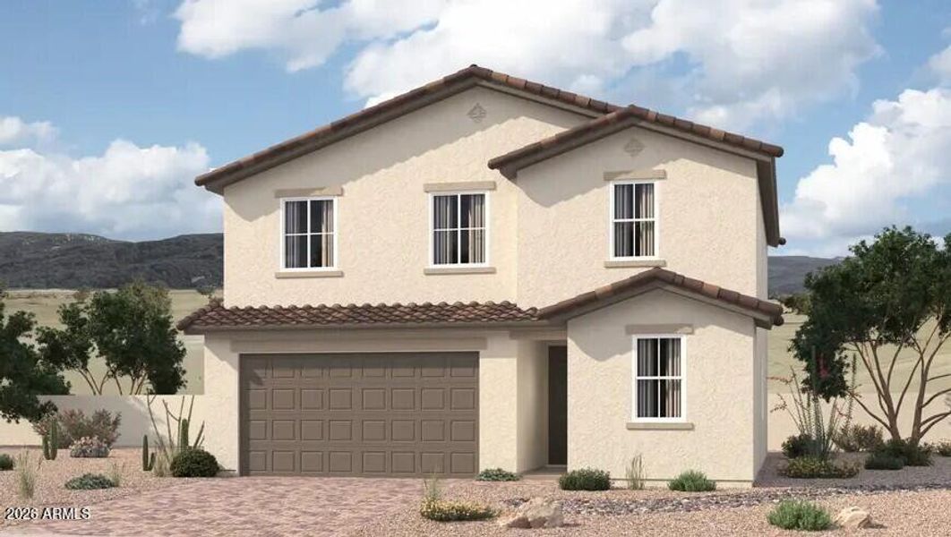 Explore this must-see Pearl home MODEL, ready for quick move-in boasting driveway pavers and front yard desert landscaping. Featuring: a well-appointed kitchen offering quartz countertops, 42'' cabinets and a center island; an open dining area; a large great room; an airy loft; an impressive primary suite showcasing an expansive walk-in closet; a relaxing covered patio; a mudroom and a 2-car garage. We are selling all of the model furniture with the home, on a separate bill of sale for $4,000!!!!
