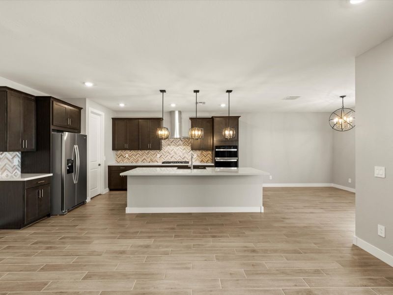 Each of the five bedrooms in this thoughtfully designed floorplan includes a spacious walk-in closet. Maple cabinets with white countertops, backsplash, tile flooring and carpet in our Modern Rustic package.