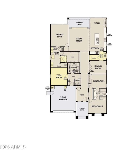 This Topaz floor plan with the popular Craftsman elevation is one of the final opportunities to own a highly upgraded home on one of the largest homesites in the Madera community. Located on a quiet street in North Queen Creek, this North-facing home offers space and functionality in a prime setting. At 2,702 square feet, the home includes three bedrooms, two-and-a-half baths, and a two-car garage with a tankless hot water heater, EV charger, and pre-plumb for water softener. The flexible layout features a teen room, formal dining or flex space, kitchen nook, and spacious great room. The open kitchen includes coconut-painted cabinetry, Citrine quartz countertops, a contrasting Coastline-stained island, GE Profile stainless steel appliance suite, chimney hood, backsplash windows, and a butler's pantry. Ten-foot ceilings and wide plank tile flooring run throughout main areas. Community amenities include a pool, pickleball, bocce ball, and easy access to SR-24. Estimated completion April.