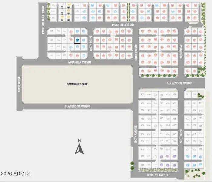 What's Special: Popular Plan | Close to Park | Close to Amenity | South Facing Lot | 2nd Floor Laundry Room | Large Kitchen Island. New Construction - Ready Now! Built by America's Most Trusted Home Builder. Welcome to the Plan CC‑RM3 at 3810 N 100th Drive in Parkside Villas. This lovely two‑story home offers 1,794 sq ft with three bedrooms, 2.5 baths, and a comfortable two‑car garage. A front porch adds charm and creates a welcoming spot to relax. Inside, an open great room, dining area, and kitchen connect daily living. Upstairs are three bedrooms, a full bath with double sinks, the laundry room, and a peaceful primary suite with a marble super shower and walk‑in closet. MLS# 6975941 Additional Highlights include: marble super shower at primary bath and soft water loop with 110V outlet.