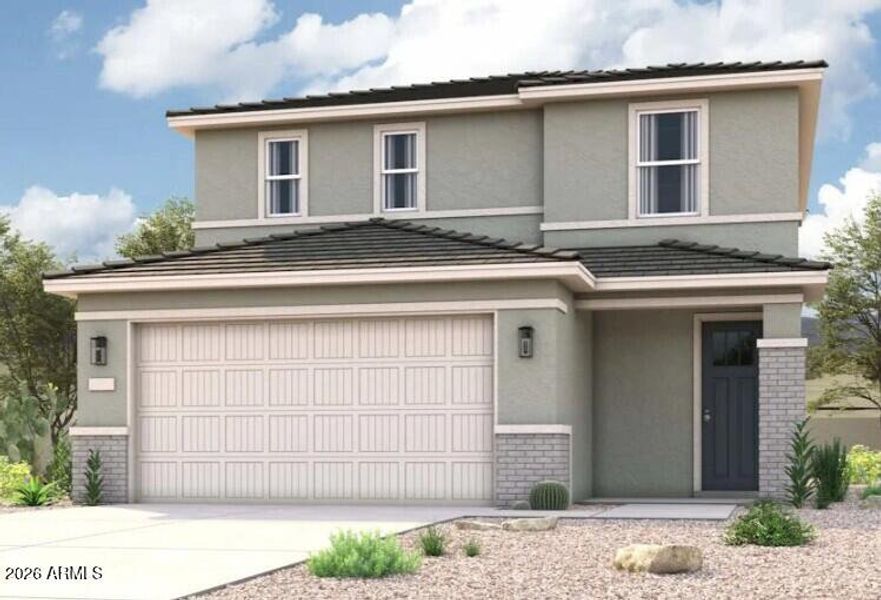 A thoughtfully designed two-story home created for entertaining, everyday comfort, and seamless indoor‑outdoor living. The Leyland in Skyline Village features an open main‑level layout with private living spaces upstairs, making it ideal for the Arizona lifestyle. The main level centers around a spacious great room that flows effortlessly into the dining area and a refined kitchen with a center island and stainless‑steel appliances, creating an ideal space for gatherings and everyday living.