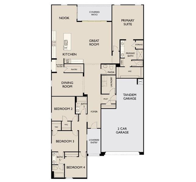 Designed for seamless everyday living and entertaining, the heart of the home features a thoughtfully connected kitchen, dining room, and great room, enhanced by a butler’s pantry for added storage and convenience. The kitchen is beautifully appointed with our Artisan Collection featuring Hana Sky quartz countertops, a 6x6 taupe tile backsplash, soft-close gray cabinetry with gunmetal hardware, and stainless steel GE gas appliances, including a matching refrigerator. A single-basin undermount sink with a matte black faucet and pendant light pre-wire above the island complete this polished space.