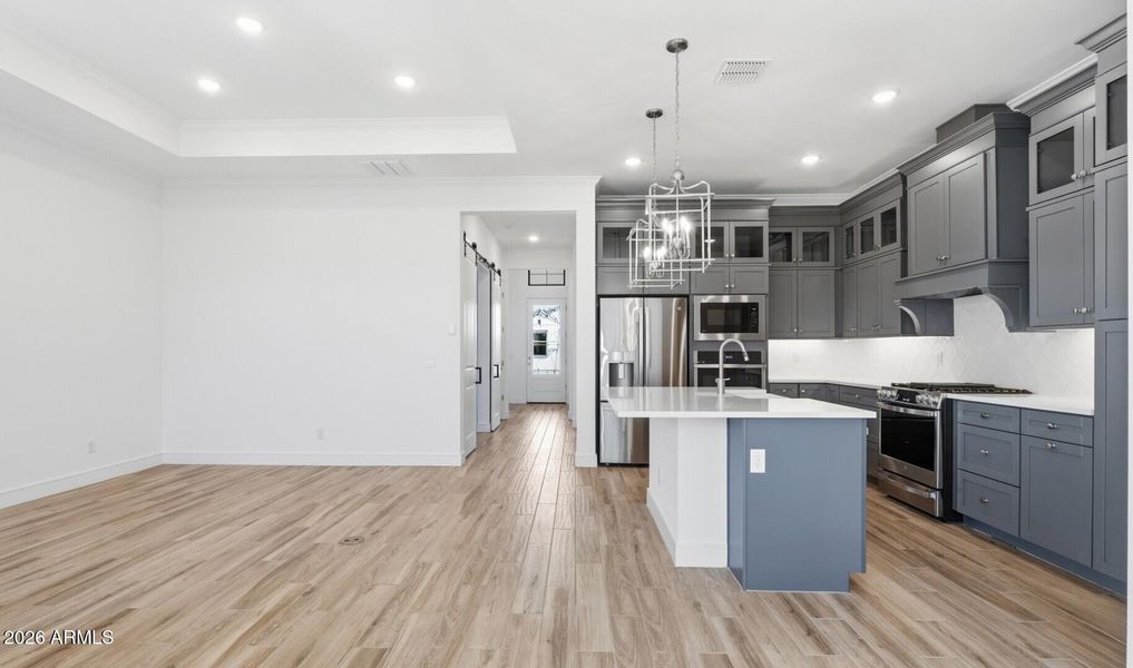 Special CASH Pricing Available $418,990 Experience refined 55+ living at K. Hovnanian's Four Seasons Victory at Verrado, where resort-style amenities and an active lifestyle come together. The beautifully designed Clyde floorplan features Classic-inspired, designer-curated finishes throughout. The stunning gourmet kitchen offers a large island with pendant lighting, Carrara Morro quartz countertops, subway tile backsplash, Grey cabinetry with satin nickel hardware, and GE Profile stainless steel appliances with a wall oven. The open great room showcases a coffered ceiling and flows seamlessly to the covered patio, ideal for indoor-outdoor enjoyment. A private home office provides flexible space for work or wellness. The primary suite features a resort-like bath serving as a quiet retreat