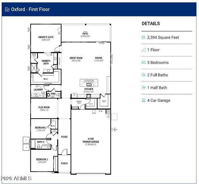 Now offering all closing costs paid and unbeatable rate buydown. Featuring 4-Car Tandem Garage, Gourmet Kitchen & Double Pantries!- 4-Car Tandem Garage, Gourmet Kitchen & Double Pantries! This bright and spacious single-story home offers 3 bedrooms, a dedicated office, and 2.5 baths. The chef-inspired kitchen features a 36'' gas cooktop, 42'' upper cabinets, quartz countertops, two pantries, and tile flooring throughout the main living areas. The primary suite is a true retreat with a tiled 60x42 shower, split raised-height vanities, and an oversized walk-in closet. Community amenities include pickleball courts, parks, BBQ areas, and scenic walking paths. Located near shopping and dining.