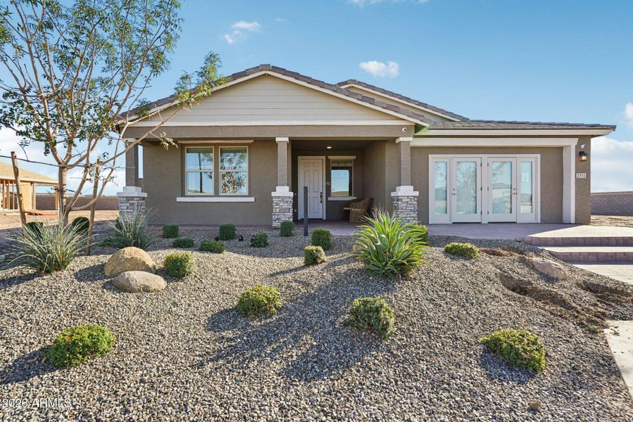 Model Home for Sale! Model furniture available to purchase in addition to list price. Nestled in the heart of San Tan Valley, this 2,485-square-foot Topaz home offers three bedrooms, two and a half bathrooms, a den, and a spacious three-car tandem garage. Upon entry, you are greeted by a wide main hallway and a large foyer with convenient closet space. The open-concept design seamlessly flows into the heart of the home, where you'll find 8-foot doors and a striking 4-panel glass slider. The sliding doors open to a private backyard retreat, offering the perfect space for relaxation.
