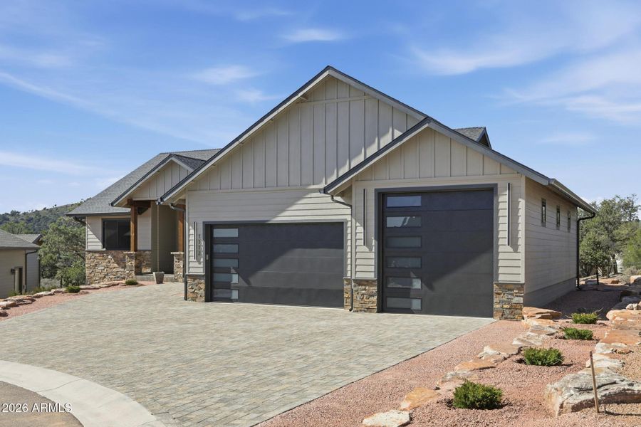 Welcome to Green Valley Vista, where exceptional craftsmanship meets quiet mountain living. Brand-new 2,193 sq ft single-level home offers a thoughtfully designed split floorplan and was custom built by the builder for himself — meaning every finish was selected with intention and no detail was overlooked. At the heart of the home is a stunning chef's kitchen featuring an upgraded ZLINE appliance package, highlighted by a professional 6-burnergas range, oversized island with integrated beverage/wine cooler, granite countertops, and beautifully upgraded cabinetry. A unique feature is the expansive kitchen view window, designed to double as a pass-through to the patio creating seamless indoor-outdoor entertaining while perfectly framing views of North Peak in the Mazatzal Mountain Range. Step outside to the impressive 600 sq ft covered patio, offering generous space for dining, lounging, and entertaining while taking in the natural beauty of Rim Country and the stunning North Peak backdrop. Premium upgrades continue throughout, including Pella windows, upgraded flooring, designer cabinetry, and elevated finishes. The striking metal front and primary suite doors by Cherry Forge, complete with built