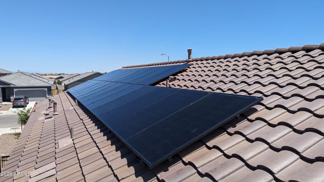 This beautifully maintained, two-year-new home is truly move-in ready & designed to impress the most discerning buyer. Step inside to a thoughtfully designed split floor plan that offers exceptional privacy w/abundant natural light throughout. The spacious Great Room seamlessly connects the family room, dining area, & an impressive kitchen featuring extensive cabinetry, granite countertops, & a large island ideal for entertaining. The private primary suite offers a relaxing retreat with a well-appointed bath. Outdoors enjoy a covered patio, low-maintenance faux lawn, & serene mountain views-ideal for morning coffee or evening relaxation. Complete w/washer & dryer, oversized laundry room, EV charger, & owned solar to help keep utility costs comfortably in check. Ready to make it your own This home includes an 8 kw Solar System with 24 panels that are owned and a Whole house Battery back-up.