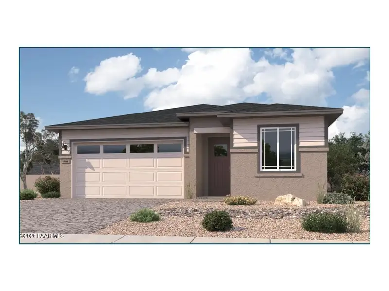 NEW CONSTRUCTION - APRIL COMPLETION! Stunning 2-bedroom, 2-bath Frontier II F with bonus den and impressive 3-car garage in South Ranch Western Collection! This 1,589 sq ft open-concept home features soaring 8-ft doors throughout, and stainless gas appliances.The private primary suite offers a peaceful retreat with generous closet space and an en-suite bath featuring double vanity and luxurious tiled shower. The versatile den provides endless possibilities as a home office or flex space, while the second bedroom and full bath accommodate guests perfectly.Enjoy outdoor living on your covered patio with beautiful views. Located near recreational trails with a short drive to Prescott, plus exciting future amenities including community clubhouse, pool, and park. $15,000 finance incentive available if buyer elects to finance with Davidson Home Mortgage!