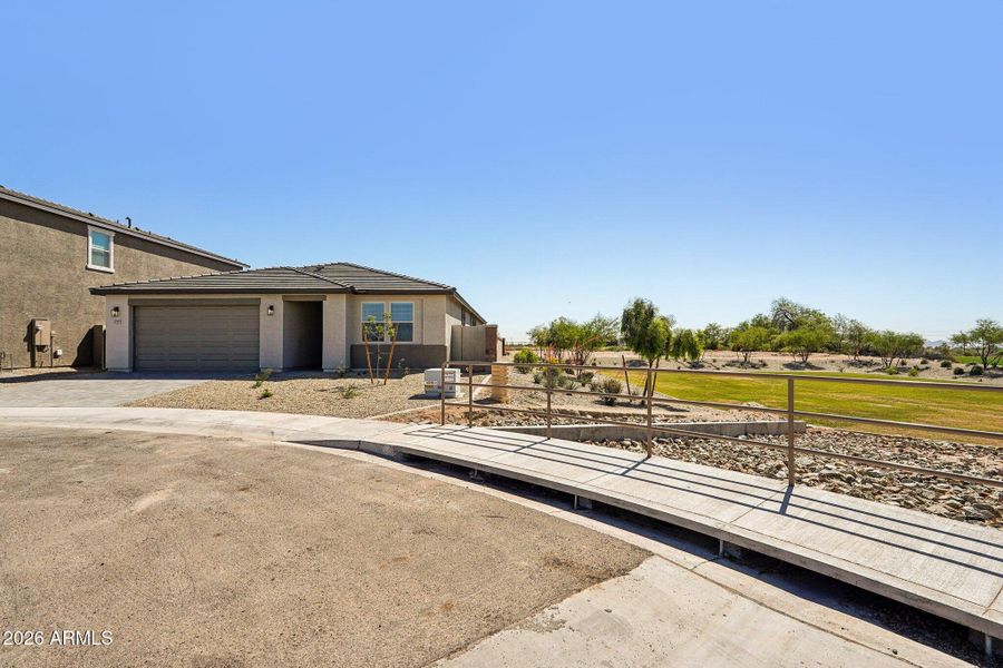 A 4-panel sliding glass door in the great room opens to the backyard, creating an easy transition to outdoor living and filling the home with natural light. Additional conveniences include 2" faux wood blinds, a soft water loop, washer and dryer, and pre-wiring for pendant lighting in the kitchen.