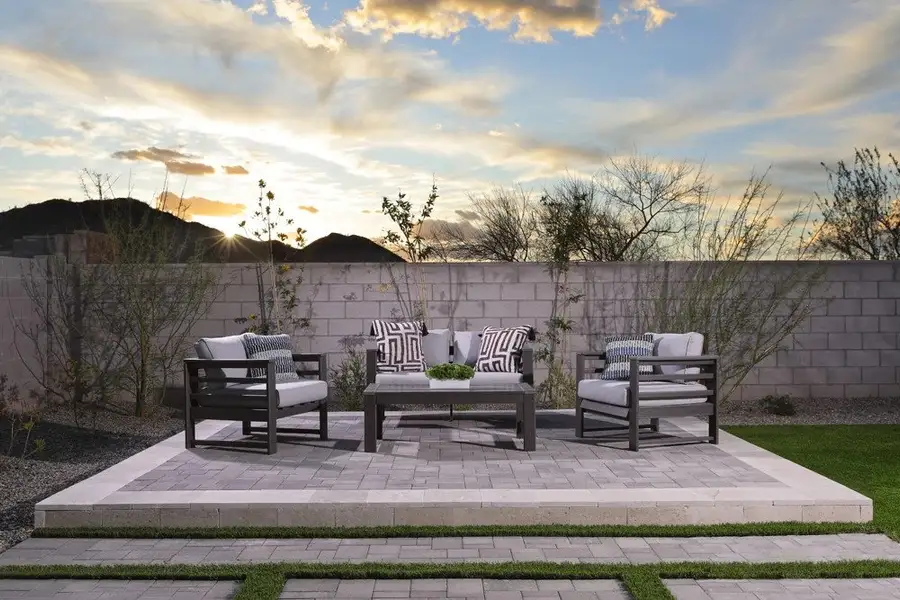 Enjoy seamless indoor-outdoor living with a dramatic 4-panel sliding glass wall that opens to a fully landscaped designer backyard perfectly positioned to capture breathtaking mountain views. Paver driveway and entry, modern desert color scheme, window coverings throughout, and extensive model-level upgrades add exceptional style and value. This rare former model opportunity blends luxury, convenience, and professionally selected design in one remarkable Arizona home.