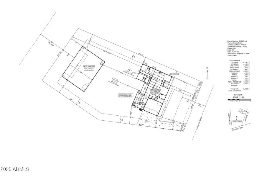 This property is perfectly situated at the end of the runway threshold with a short taxi. The plans have been fully approved by Navajo County for both the home and the 80' x 60' hangar. The hangar can be built for an additional cost agreed upon by the buyer and seller depending on final door size and type. The home itself is designed for a large family with a large kitchen, walk-in pantry and laundry room, 3 car garage, large attic room above the master bedroom with a on suite bath that features a sauna and wet room, 2 additional offices, a workout room for the adult and game room for the kids! Most interior finishes can be selected by the buyer within the allotted budget. This is the perfect opportunity to own a beautiful mountain estate at such a sought after airpark.