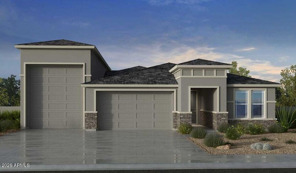 What's Special: RV Garage | Corner Lot | East Facing Patio | Oversized Garage | Best Seller. New Construction - May Completion! Built by America's Most Trusted Home Builder. Welcome to the Overland at 24393 N 167th Lane in Asante Journey! This spacious home opens with a warm foyer leading to two bedrooms, a bath, and a study. Enjoy open living with a great room, dining area, kitchen with island, and covered patio. A private bedroom suite and serene primary suite offer comfort, while two car and RV garages add convenience. Additional Highlights Include: study, 4th bedroom with ensuite, large multi-slide door at great room, monogram appliances, upgraded maple cabinets, and quartz countertops throughout. MLS# 6993933