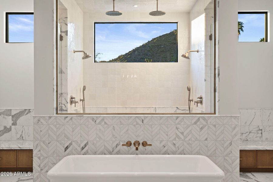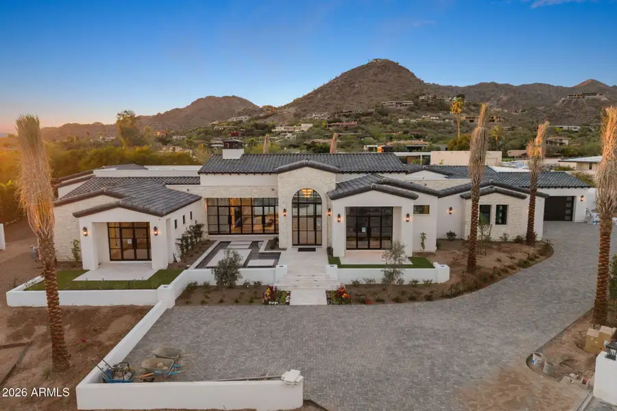 Welcome to the latest estate by LuxEstate Development. This exceptional Paradise Valley residence offers a rare combination of timeless design, elevated comfort, and breathtaking natural beauty. Set on over an acre with 8,363 square feet of refined living, the home is thoughtfully positioned to capture stunning views of Camelback Mountain and the Phoenix Mountain Preserve from nearly every angle, creating a constant connection to the surrounding landscape. The transitional design feels both sophisticated and inviting with rich finishes and warm, livable spaces. Inside the main residence, you'll find 4 bedrooms and 6 bathrooms, along with expansive gathering areas designed for both everyday living and effortless entertaining. Floor-to-ceiling glass fills the interiors with natural light and frames the mountain views throughout, while imported stone, custom millwork, and carefully selected finishes add depth, texture, and character to every room. Center stage, the kitchen is as functional as it is beautiful, opening seamlessly to the main living spaces and supported by a separate back kitchen with SubZero, Wolf, and Cove appliances throughout and custom cabinetry--ideal for hosting while keeping everyday life beautifully organized. A private office adds flexibility for work or quiet retreat, while multiple entertaining spaces create an easy, natural flow throughout the home.