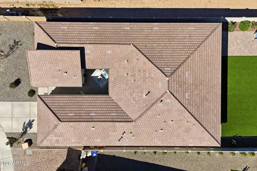 Incredible opportunity to own one of the best sunrises in North Peoria! Nestled on a quiet hillside cul-de-sac, this newly built home features an extended driveway leading to a FOUR-car garage. A charming courtyard welcomes you to a bright, open split floor plan with 10-foot ceilings and a spacious great room designed for entertaining. Oversized sliders open to a beautifully finished backyard with Extended covered patio, pavers, turf & colorful shrubbery. The chef's kitchen shines with an enormous island and stylish finishes. Two bonus rooms offer a flex space for an office, dining, den, gym, or media room. This home has 2 outstanding en suites w spacious closets and another 2 large bedrooms w an additional full bath and a 1/2 bath. Assumable VA loan (VA buyer only).