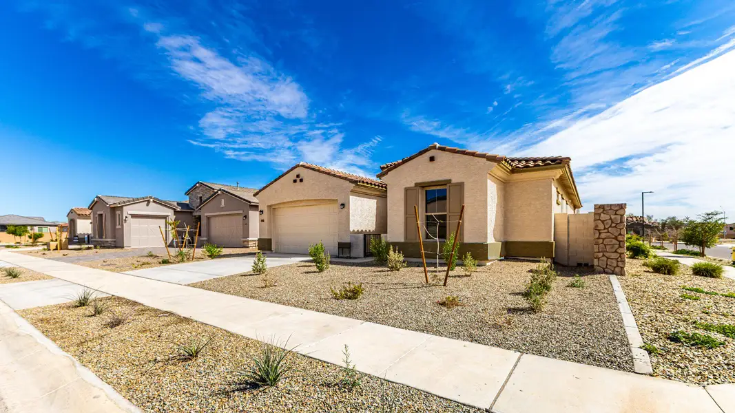 The Crimson floor plan from the Hacienda Series blends warmth, style, and everyday functionality. At the heart of the home is a spacious gourmet kitchen featuring a large island, stainless steel appliances, 42" upper cabinets, and beautiful whole-house granite - creating the perfect space for cooking, gathering, and entertaining. Thoughtfully designed living areas flow seamlessly to create a welcoming environment where you can relax, connect, and enjoy everyday moments. Designer-selected finishes, satin nickel hardware, and refined details throughout add a fresh, elevated feel. The bathrooms feature executive-height vanities that provide both comfort and style. Whether hosting friends or enjoying a quiet evening at home, the Crimson offers a beautifully balanced space designed for modern living.